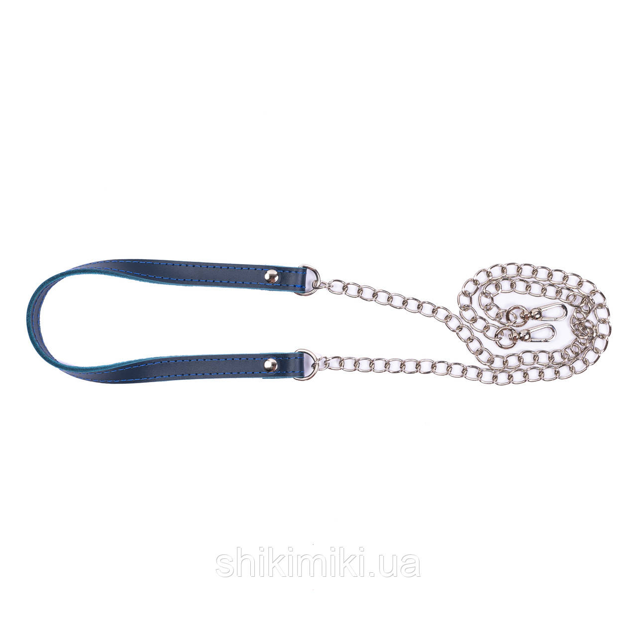 Ремінь шкіряний двосторонній з ланцюжком і карабінами (125 см), колір Синій